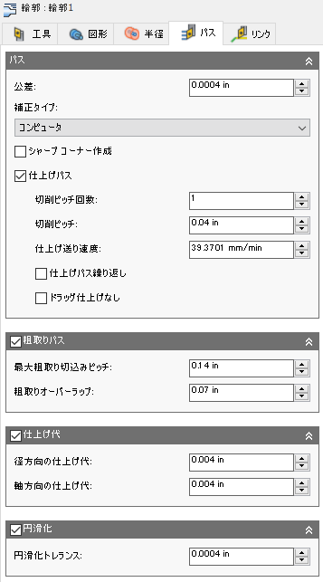 仕上げ操作では、既定値を 0 ミリ/0 インチに設定し、材料が残されていないことを示すようにするのが一般的です。