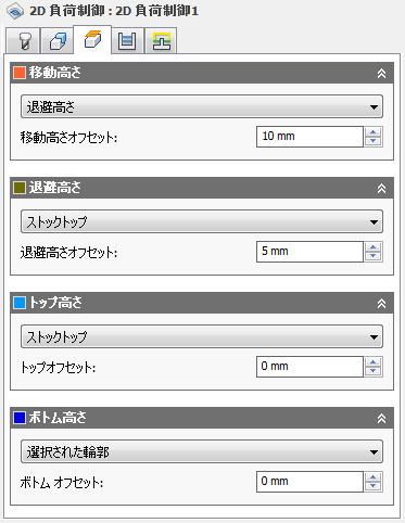 退避高さオフセットは、上にある退避高さのドロップダウン リストの選択内容を基準に適用されます。