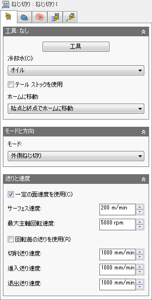 移動切断から先頭の場合に使用します。入力は、回転ごとの送りを使用の設定と、現在の[単位]に基づきます。