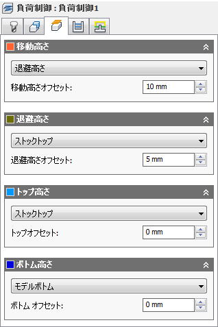 退避高さオフセットは、上にある退避高さのドロップダウン リストの選択内容を基準に適用されます。