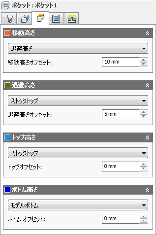 退避高さオフセットは、上にある退避高さのドロップダウン リストの選択内容を基準に適用されます。