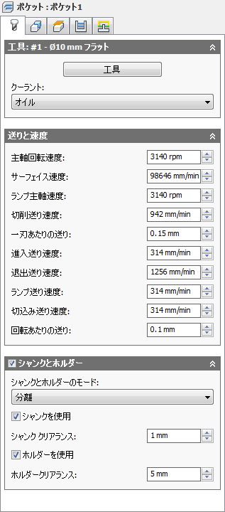 サーフェス上のツールの速度を、スピンドル速度として表されます。