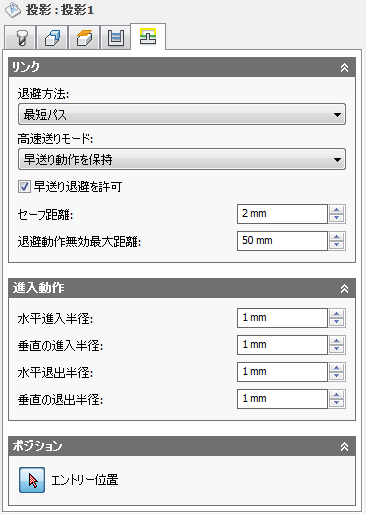 進入が進入からツールパスに移動するときに円滑化される垂直円弧の半径です。