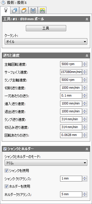 これは従来の切削ツールパスを生成するには、[ 高 ] 設定とツールパスの方向を反転します。