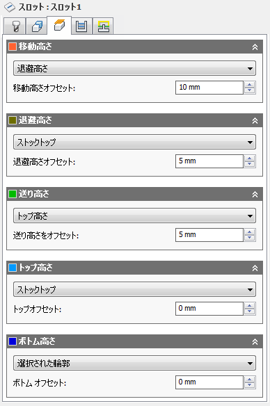 退避高さオフセットは、上にある退避高さのドロップダウン リストの選択内容を基準に適用されます。