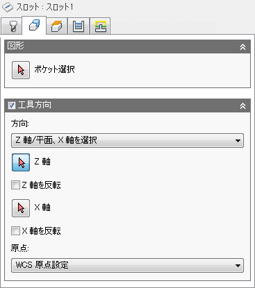 座標系の方向と原点のオプションの組み合わせを使用して工具方向を決定する方法を指定します。