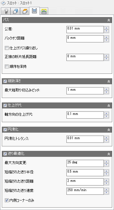 最大切込みピッチ: 仕上げ切込みピッチなしで表示