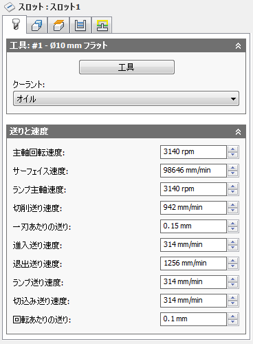 サーフェス上のツールの速度を、スピンドル速度として表されます。