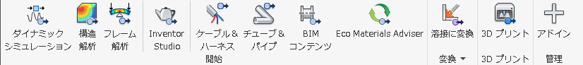 注: ダイナミック シミュレーションと構造解析は、Autodesk Simulation 製品および Autodesk Inventor Professional の両方で使用することができます。ケーブル&ハーネスおよびチューブ&パイプは、Autodesk Inventor Professional のみで使用することができます。
