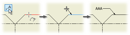 - グラフィックス ウィンドウで、クリックして引出線の始点を設定します。ハイライト表示されたエッジや点に始点を配置すると、引出線はそのエッジもしくは点にアタッチされます。