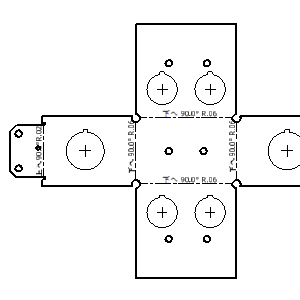 曲げ注記は、シート メタルの曲げ、コンター ロール、コスメティック中心線に対して加工情報を追加します。曲げ注記は、シート メタル パーツのフラット パターン ビューに追加することができます。