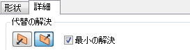 | [方向 1]、[代替の解決]は[方向 2]、[最小の解決]はオン |
