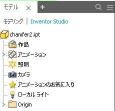 - モデル、アセンブリ、およびその他の環境ブラウザ間の切り替えが 1 回のクリックで簡単にできるようになりました。たとえば、Inventor Studio 環境がアクティブなときに、クリック操作だけで Inventor Studio ブラウザとモデル ブラウザとを切り替えることができます。