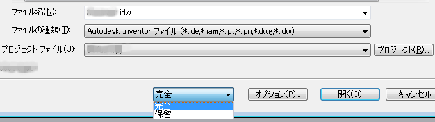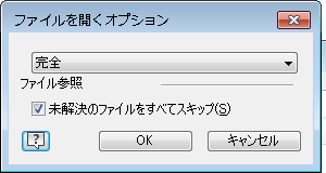 - [ファイルを開くオプション]ダイアログ ボックスで、以前の[更新を保留]チェック ボックスと[高速オープン]チェック ボックスから[完全]または[保留]コンボ ボタンに置き換えられています。