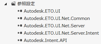 クラス ライブラリでアクションを実装します。複数のクラス ライブラリがあり、それぞれに複数のアクションが含まれています。ServerIntentActionBase から継承するアセンブリ内の各クラスは、実行時にアクションとして Intent セッションにロードされます。このクラスは、¥Inventor ETO Components 2014¥Bin¥Public Assemblies¥ フォルダからいくつかの参照が必要です。さらに、必要に応じて ¥Inventor ETO Components 2014¥Bin¥ フォルダから IntentAPI アセンブリを参照します。