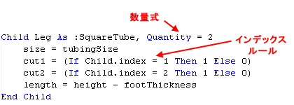 ルールによって変更されていない限り、子の一覧の子の既定の名前は、子の一覧ルールの名前に、アンダースコア、子のインデックスが順に続きます。たとえば、Leg_2 などです。