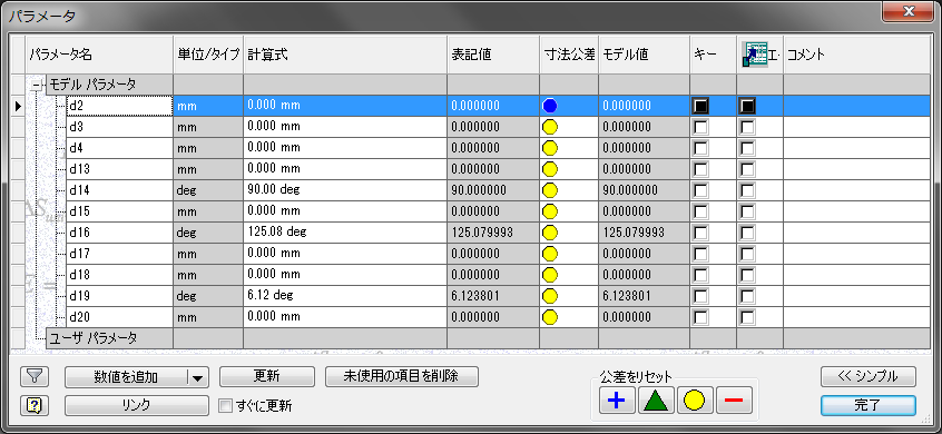上で追加した 2 つのアセンブリ パラメータに holeDia と厚さを設定します。