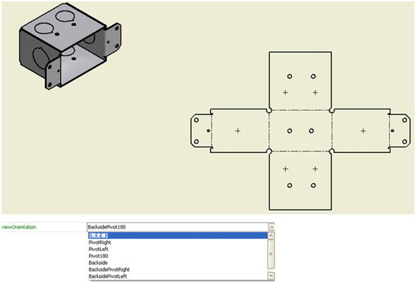 | viewOrientation | name | フラット パターン ビューの位置合わせを指定します。有効な値は、:Default、:PivotRight、:PivotLeft、:Pivot180、:Backside、:BacksidePivotRight、:BacksidePivotLeft、:BacksidePivot180 です。:Default は既定値です。 |