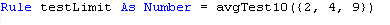 Rule testLimit As Number = avgTest10({2, 4, 9}, :limit, 4)