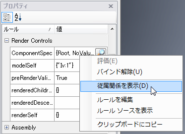 依存関係ダイアログ ボックスを表示するには、[プロパティ]ウィンドウで評価されたルールを右クリックし、[従属関係を表示]を選択します。