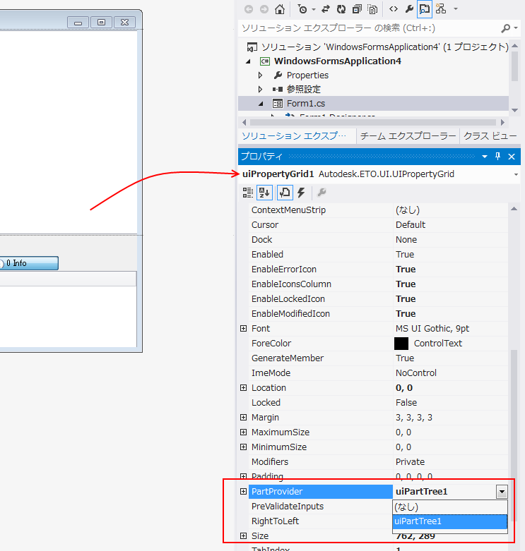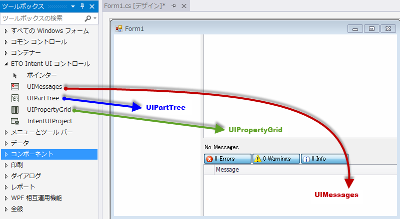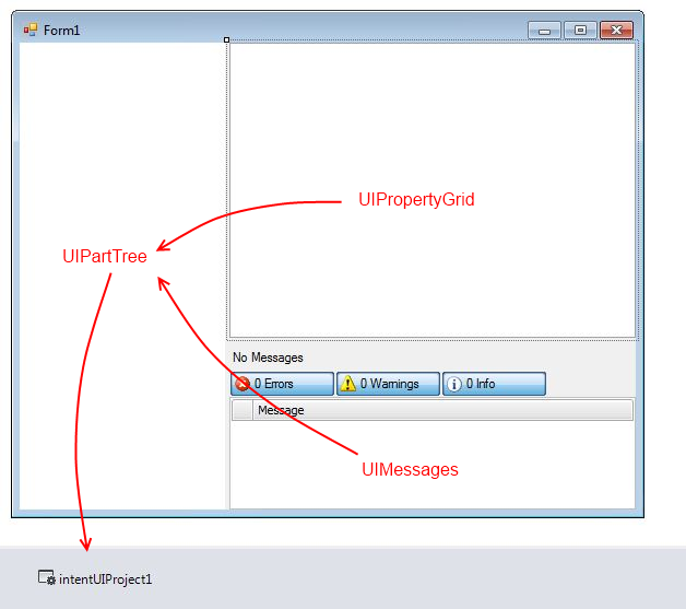 UIPropertyGrid と UIMessages は両方とも PartProvider プロパティを UIPartTree に設定されています。UIPartTree は、PartProvider を IntentUIProject に設定されています。