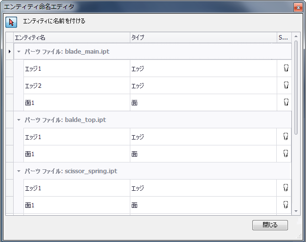 - エンティティ名を選択します(パーツ ファイルのみ)。