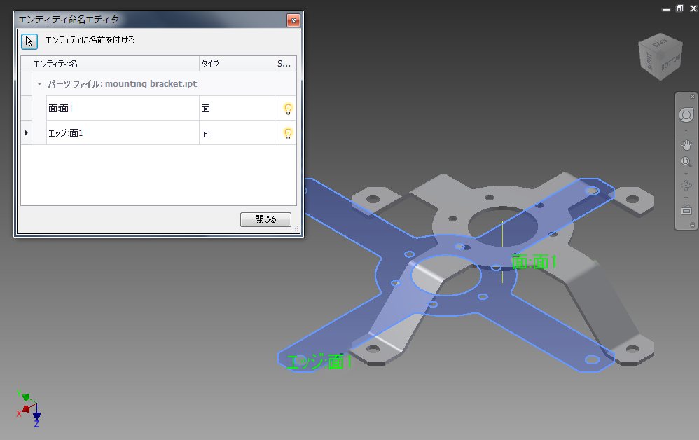 ソリッド ボディのジオメトリ エンティティ(面、エッジ、頂点)に名前文字列を割り当てます。