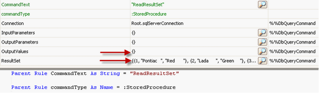 矢印は、有効な戻り値または結果セットであることを示します。