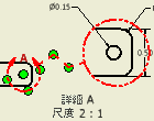 7. グラフィックス ウィンドウで、クリックして作成する詳細図の中心を指定してから、カーソルを移動し、クリックして詳細図の外枠を指定します。