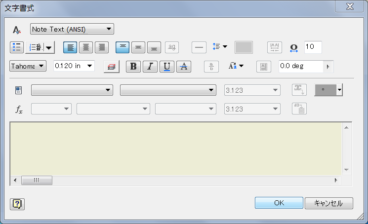 図面ファイル内で文字を作成または編集すると、グラフィックス ウィンドウで動的にプレビューできます。[文字書式]ダイアログ ボックスを閉じる前に、文字の外観を調整することができます。