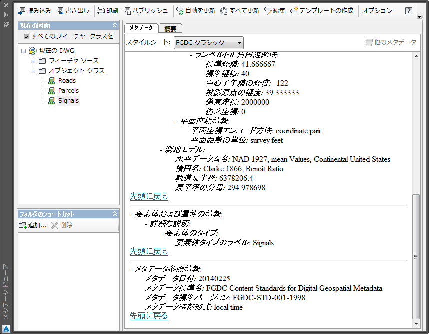 メタデータは、図面自体に格納されます。メタデータは、図面を編集するたび、または分類済みオブジェクトを含むアタッチされた図面に再接続するたびに更新されます。