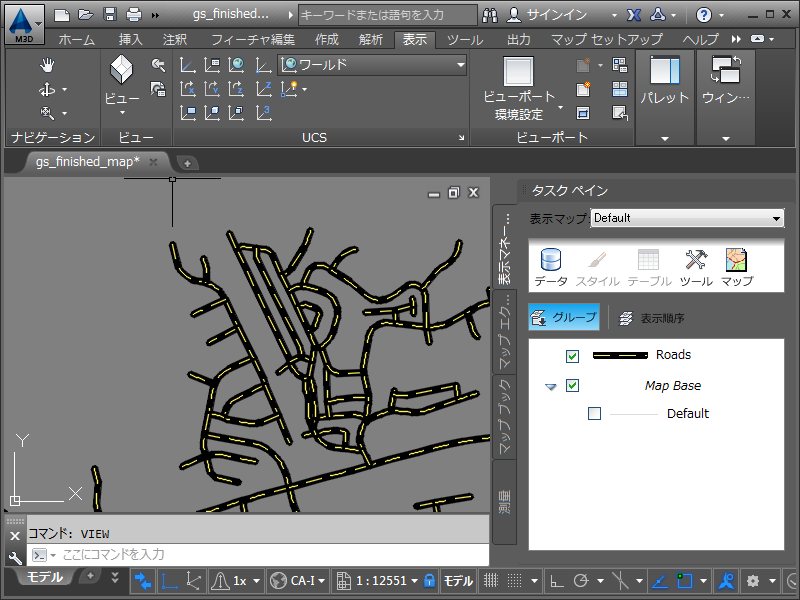 [保存]をクリックします。 マップ ファイルには、AutoCAD 図面と同じように、.dwg ファイル拡張子を使用することに注意してください。どちらのファイル タイプも同じ基本ファイル形式を使用します。