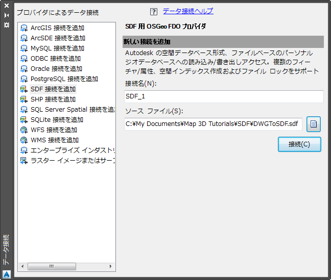 作成した SDF ファイルに接続します。