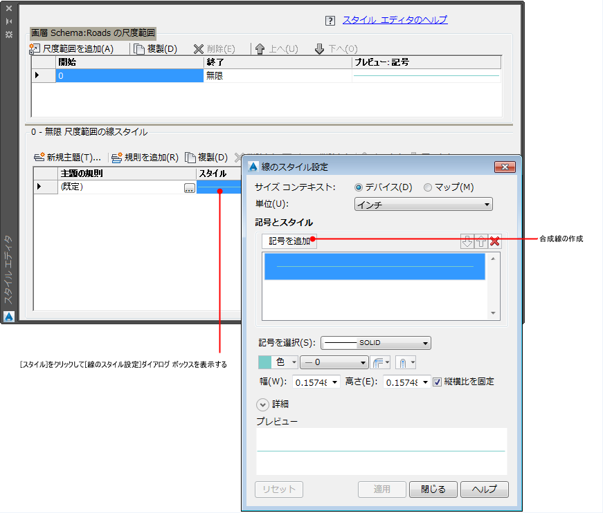 - 遠隔ビューに拡大ズームしても道路にはスタイル設定が適用されないように、別の尺度範囲を定義します。