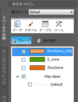 これで、マップには、元の画層2つとオーバーレイの新しい画層が表示されます。