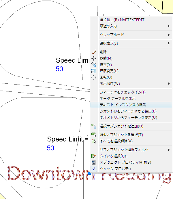 "Downtown Redding" テキスト インスタンスをクリックし、右クリックして[テキスト インスタンスの編集]をクリックします。