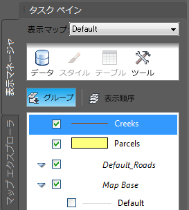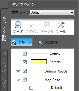 [表示マネージャ]タブに、現在のマップの画層が表示されます。