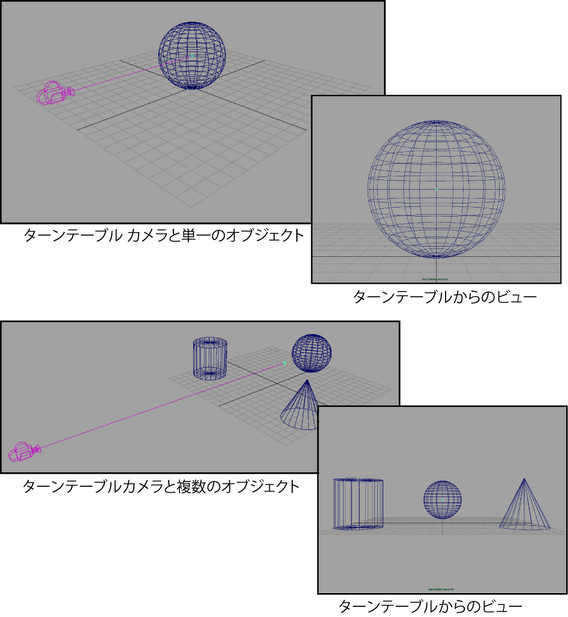 ターンテーブル カメラのビューは、ロックされています。ターンテーブル カメラをドリー、タンブル、またはトラッキングすることはできません。