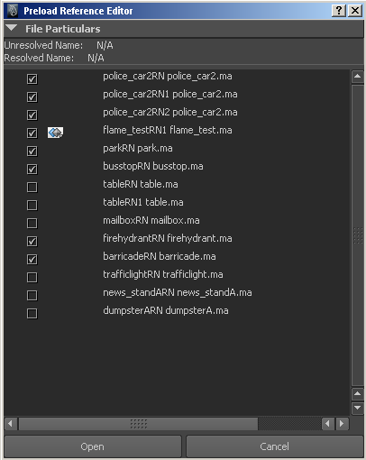 - プリロード リファレンス エディタ(Preload Reference Editor)は、ファイルを開く場合、選択的プリロード(Selective Preload)オプションがオンに設定されている場合に表示されます。