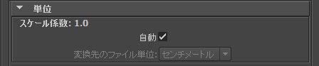 - 変換値、すなわち書き出し時にプラグインがシーン全体に適用するスケール係数(Scale Factor)が表示されます。 既定では、Maya FBX Plug-in はホスト アプリケーションのシステム単位設定を使用して、FBX ファイルの書き出しで使用する単位を決定します。 つまり、既定の書き出しのスケール係数(Scale Factor)は常に 1.0 になります。また、書き出し処理中は、どの単位スケールの変換も適用されません。