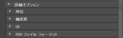 このセクションでは、FBX ファイルに含める情報の形式を決定します。