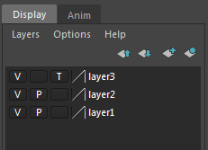 また、ディスプレイ レイヤの可視性を切り替えて、再生中にのみオブジェクトが非表示になるようにすることもできます。アニメーションの再生中に重要でないオブジェクトを非表示にすることで、再生パフォーマンスを向上させることができます。たとえば、再生中にキャラクタのコントロール リグ オブジェクトが非表示になるように設定します。リグはアニメーションの作業中には表示され、再生を押すと非表示になり、再生パフォーマンスが低下しないようになります。