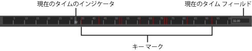 キー マークは、タイム スライダ(Time Slider)にある赤いマーク(既定)で、選択したオブジェクトに設定されたキーを示します。特殊なタイプであるブレイクダウン キーはタイム スライダ(Time Slider)上に緑色のマークで表示されます。ブレイクダウンを参照してください。