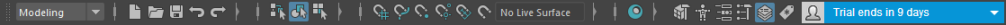Maya LT のバージョンによっては、Autodesk アカウントのユーザ名や体験版の残り日数が表示されます。現在のユーザーを変更したり、Maya LT を購入するなど、他のオプションについてはクリックします。ライセンスの詳細については、「Maya LT のインストール」を参照してください。