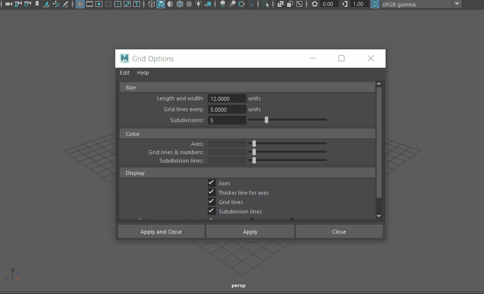 これらのオプションを使用して、Maya のグリッドをカスタマイズします。「グリッドを表示、非表示、または変更する」も参照してください。