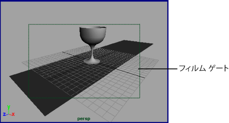 実世界のカメラによってフィルムに記録されるカメラ ビュー領域を示す境界が表示されます。このフィルム ゲートの寸法は、カメラの絞りに相当します。