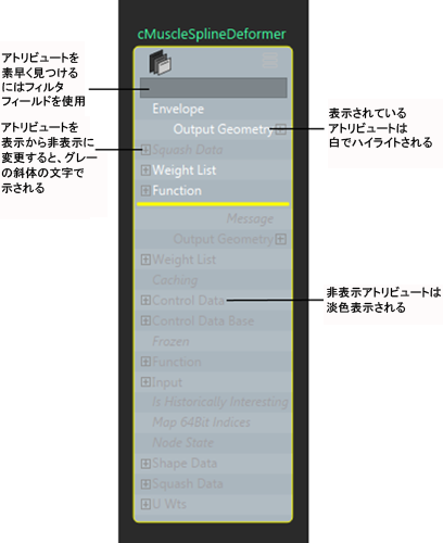 各ノード タイプに表示されるアトリビュートのリストをカスタマイズすることができます。
