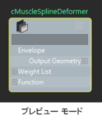 を押します。 プレビュー(Preview): 現在の変更を確定した場合にノードがどのように表示されるのかをプレビューします。ノードは可視のすべてのアトリビュートを表示される順序でリストします。ヘッドアップ ディスプレイがノード エディタ(Node Editor)の右上コーナーに表示され、マウスをクリックしてカスタム アトリビュートのプレビューを終了することが通知されます。