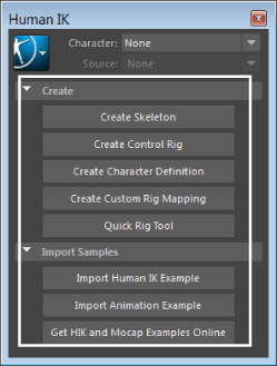 HumanIK サンプルを読み込み(Import Human IK Example)およびアニメーション サンプルを読み込み(Import Animation Example)