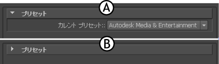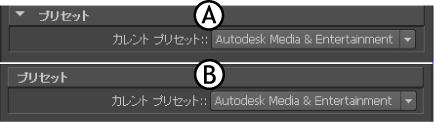 オプションまたはオプションのグループの UI 上での表示状態を、展開(A)または集約(B)に変更します。